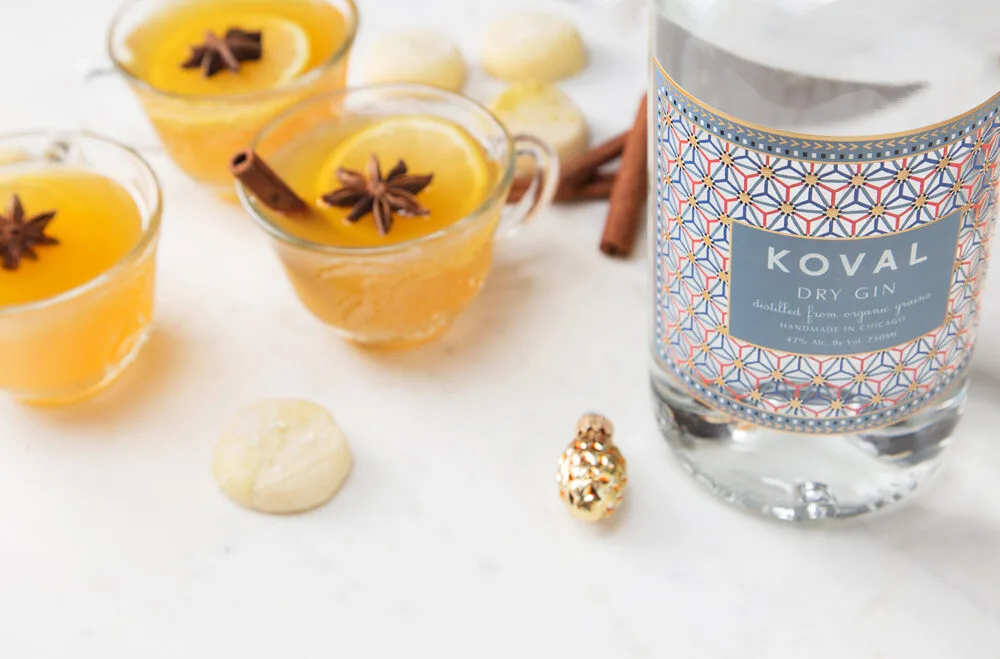 A variation on the classic glüwein, Glüh Gin starts with a big batch of mulled apple cider, flavored with lemons, ginger, cinnamon, clove and star anise. Simply serve it over KOVAL Dry Gin and toast to the holidays!